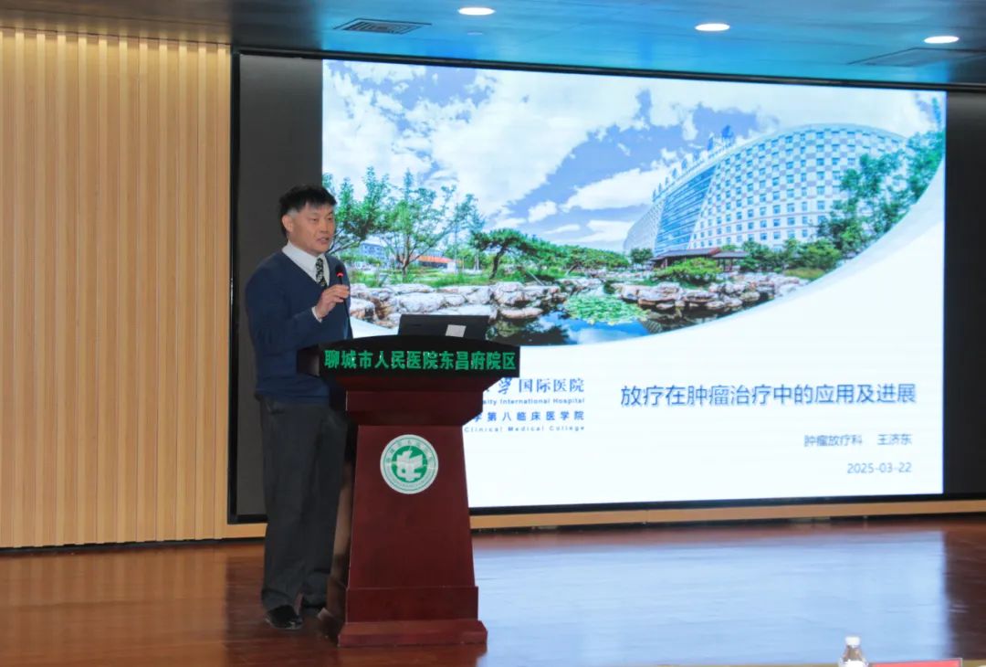 开幕式后,学术交流环节精彩上演。解放军总医院第五医学中心肺部肿瘤科副主任医师王红、北京大学国际医院肿瘤放疗科主任医师王济东、首都医科大学附属北京地坛医院肿瘤诊疗中心副主任医师丁晓燕、原北京解放军307医院乳腺肿瘤科副主任医师曾敏、北京大学国际医院副主任技师陈星宇等五位资深专家,围绕肿瘤及放疗专业相关前沿问题进行了深入的学术分享,为在场的医疗工作者带来了最新的理念与技术知识。东昌府院区党委委员、副院长李森与党委委员王兵共同主持学术会环节,确保交流活动高效有序进行。